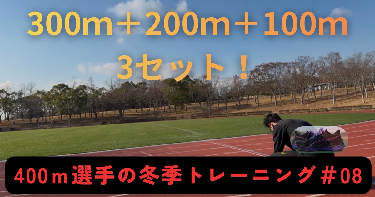 今回は高校生の時の冬季は毎週走っていた300m+200m+100m×3setを1人で走ってきました。